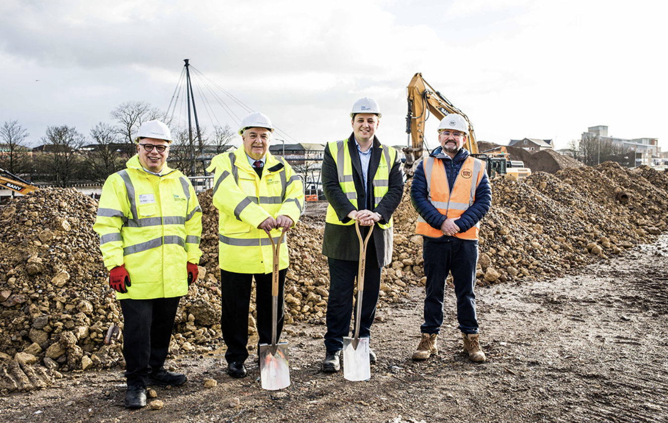 Councillors and appointed contractors, Esh Construction, joined Tees Valley Mayor Ben Houchen to mark the start of work on the site where the former Castlegate Shopping Centre and Swallow Hotel stood before its demolition earlier this year.